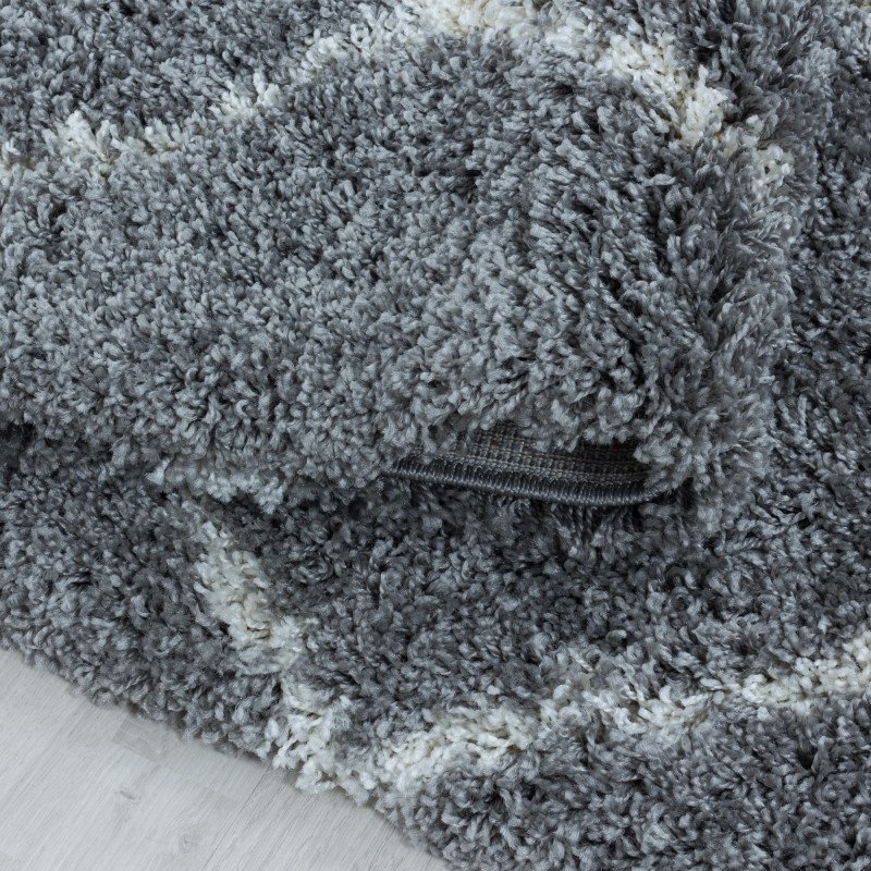 Hochflor Teppich, Geometrisch Design, Farbe Grau, Teppich für Wohnzimmer, Rücken aus Jute, Größe: 80 x 250 cm